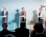 Die Regierungskoalition denkt über eine weitgehendere Öffnung des Sozialpartnermodells als bisher geplant nach, um ihre Ziele für eine stärkere Verbreitung von Betriebsrenten zu erreichen. Es gebe eine Diskussion über die Öffnung von Sozialpartnermodellen für branchenfremde Unternehmen, sagte Marc Biadacz von CDU/CSU (Bild: zweiter von links) auf der Handelsblatt-Jahrestagung für betriebliche Altersversorgung in Berlin.