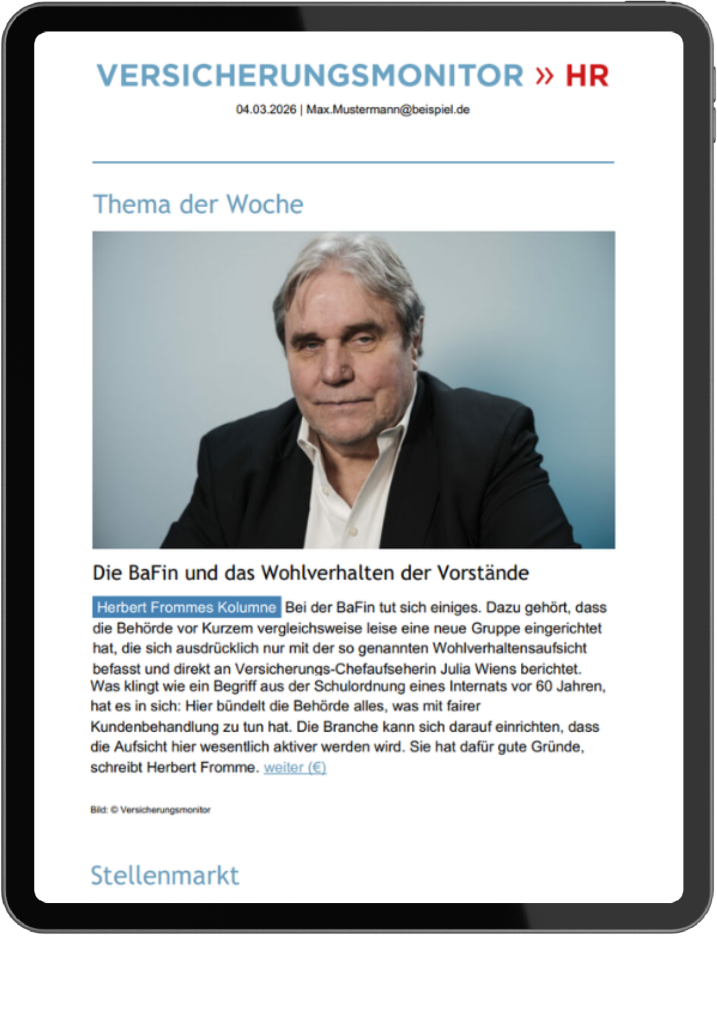 Versicherungsmonitor-HR-Newsletter. Immer bestens informiert.